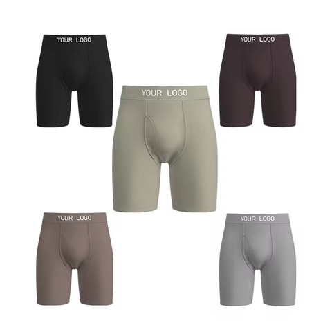 맞춤 로고 남성용 면 팬티 통기성 맞춤 브랜드 회색 검정 가벼운 롱 레그 남성용 복서 팬티